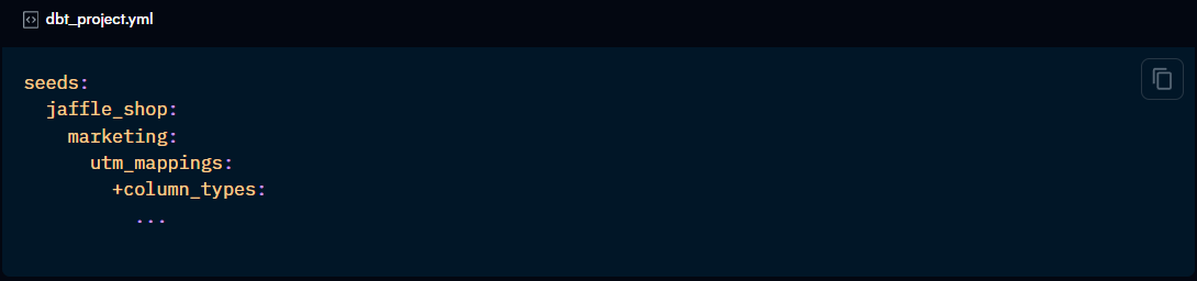 If you’ve previously run “dbt seed”, you will need to run it again with the “--full-refresh” flag.