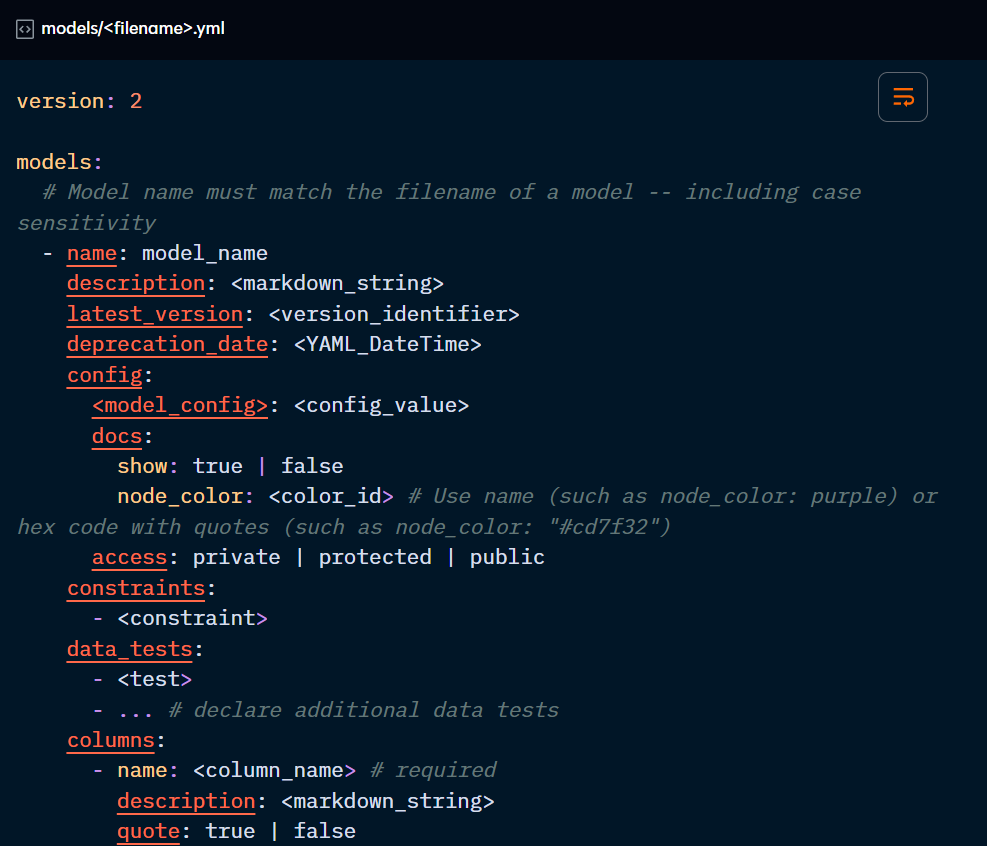 Sets a date for when the model is deprecated. After this date has passed, dbt will issue a warning message if you try to run the model. This property works well with versions and other model governance features, which will be covered later in the guide.