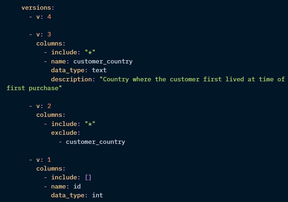 This is a dbt feature that allows you to define different versions for your models. It takes the following parameters: