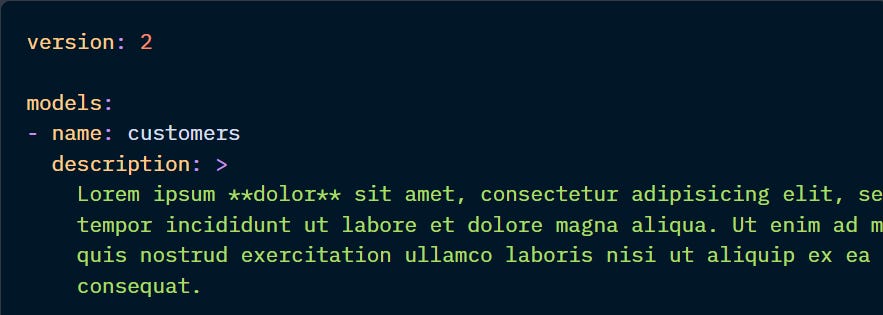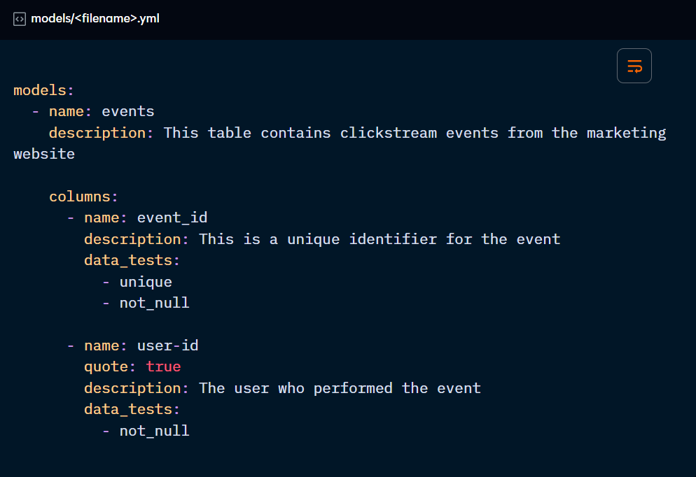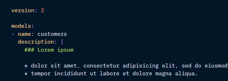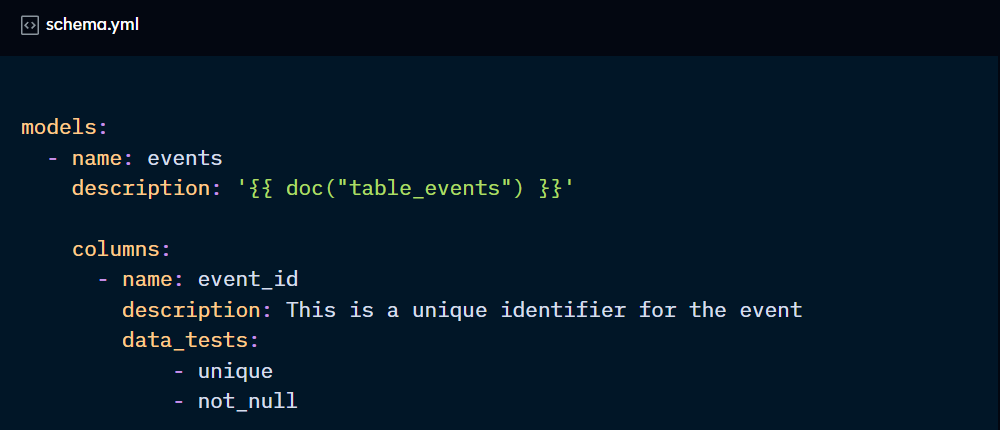 Start by adding descriptions to tables and columns. They should be added to the same file where the data tests are declared.