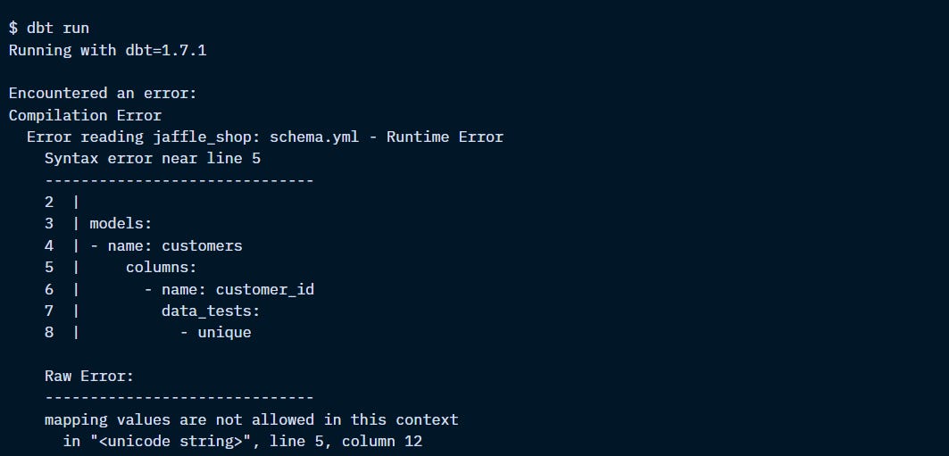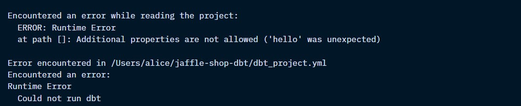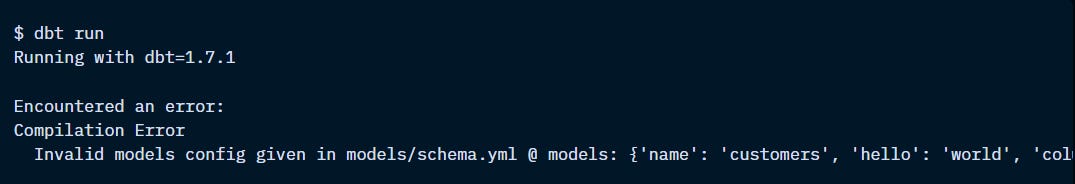 Here, the YAML structure is right but there is a key that dbt doesn’t recognise.
