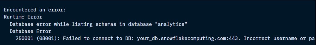 If you update the credentials, run “dbt debug” to check that you can connect.