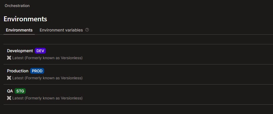 In order to build the models, we need to set up our environments. Currently, we only have a Development environment. We are going to create our Staging (not necessary for now, just for practice) and Production environments.