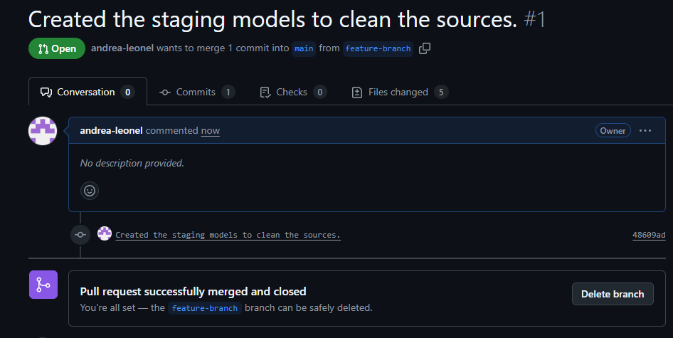 After that, you should create the pull request on GitHub and merge these changes into the main branch. I did not use PR templates yet, I’m leaving it for future Checkpoints.