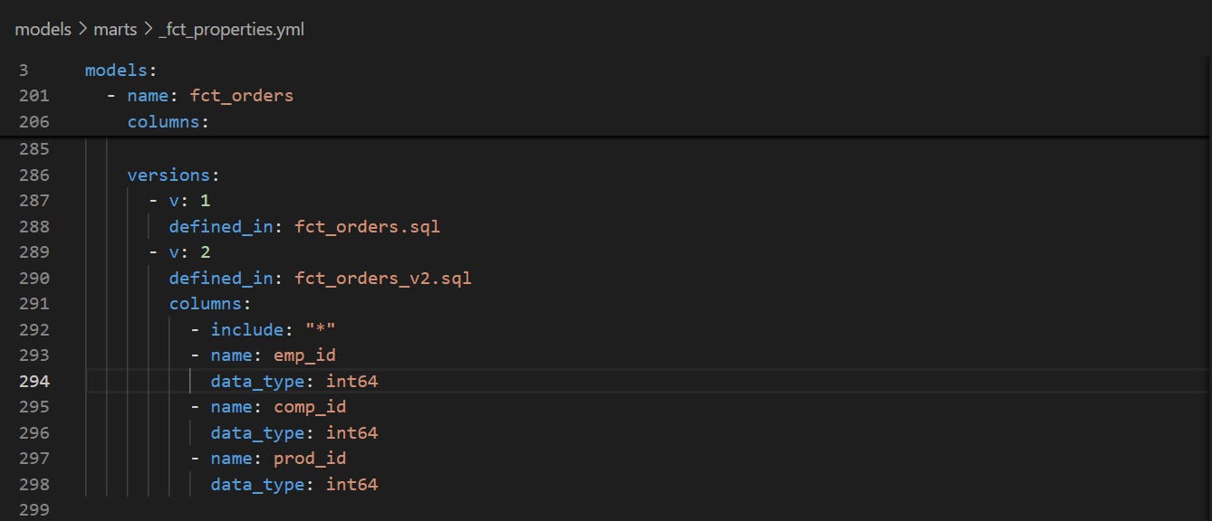 I tried versioning fct_orders and set up the configuration as per the documentation. However, dbt refused to read “fct_orders” as the v1 model. I tried using the defined_in optional parameter, renaming fct_orders to fct_orders_v1. Nothing worked.