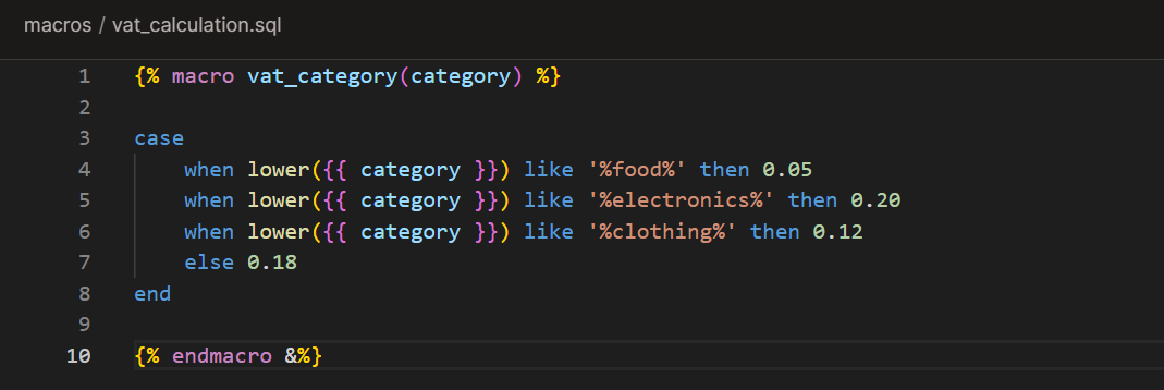 In order to ensure that the same logic is used across the company and to make this code easier to maintain, we should make them as re-usable macros.